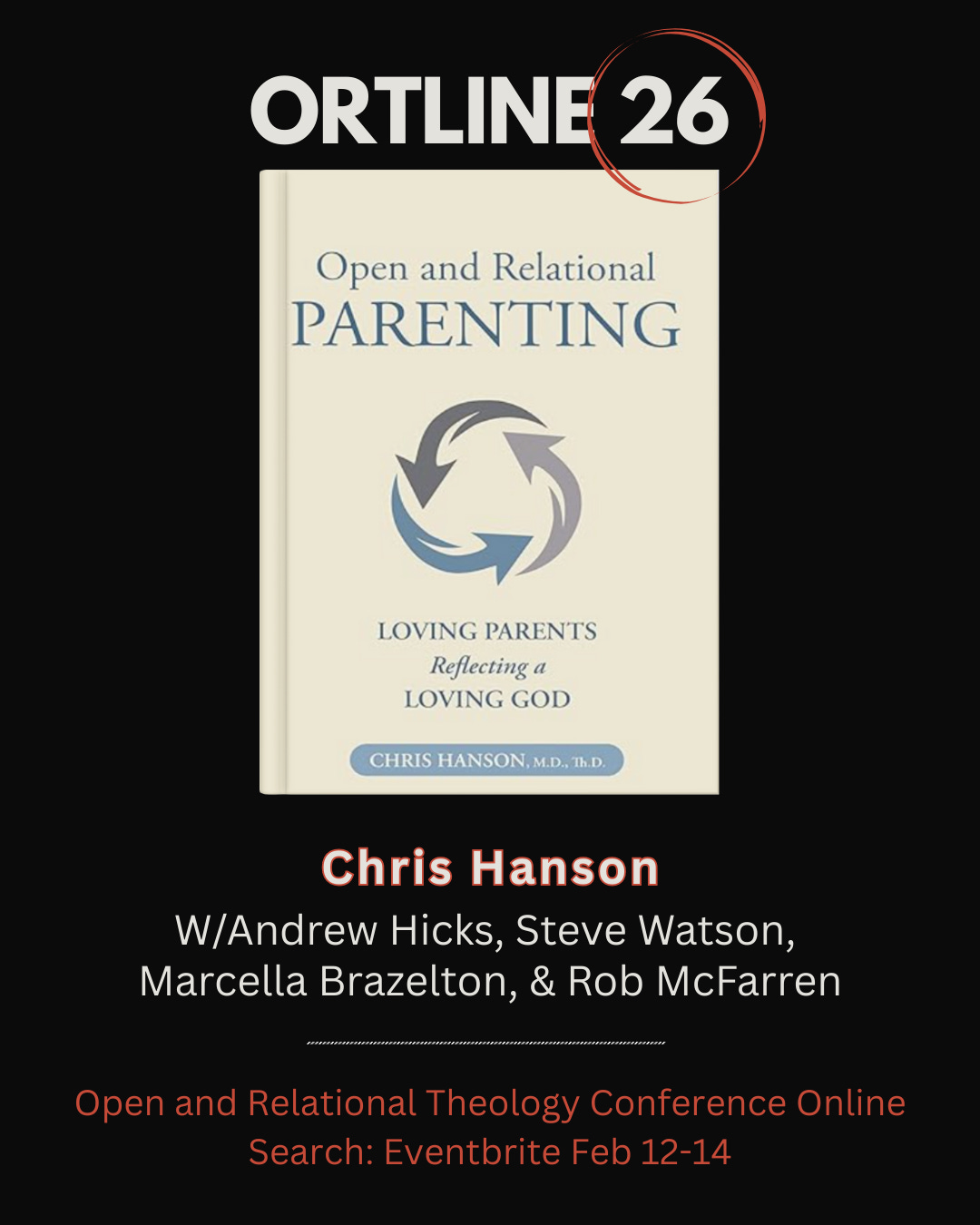 I want to invite you all to ORTLine 26, an online conference focused on new books in open and relational theology. My book, Open and Relational Parenting: Loving Parents Reflecting a Loving God, will be featured and discussed on February 14th at 12:00 p.m. Central Time.
